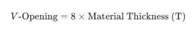 Для стандартной низкоуглеродистой стали общее правило выбора размера отверстия V-образной матрицы следующее: