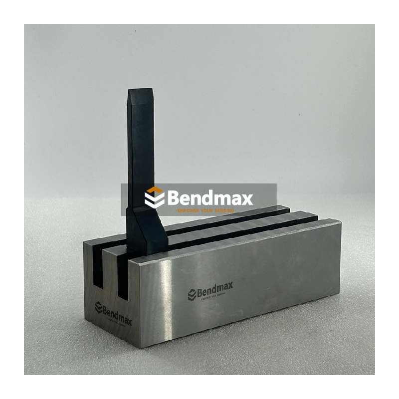 Предлагается полный ассортимент стандартной оснастки для листогибочных прессов усилием от 120 до 30000 кН. В наличии одинарные, многогнездные и регулируемые V-образные матрицы, вертикальная съемная оснастка, а также специальная оснастка для нестандартных задач. Компания Bendmax производит высококачественный прецизионный шлифованный инструмент из лучших материалов, обеспечивающих максимальную прочность и длительный срок службы. Он штамп для одностороннего V-образного тормоза типа LVD V-образная матрица, изготовленная из закаленной инструментальной стали 42CrMo, предназначена для формирования острых углов в прецизионных деталях из листового металла, используемых в корпусах электрооборудования, аппаратных компонентах и легких металлоконструкциях. При выборе этого типа V-образной матрицы убедитесь, что V-образное отверстие соответствует толщине материала и желаемому внутреннему радиусу, чтобы добиться точных результатов без чрезмерного напряжения матрицы. Для достижения наилучших результатов операторам следует поддерживать чистоту поверхности матрицы, обеспечивать правильное выравнивание матрицы и избегать превышения предельных нагрузок листогибочного пресса, чтобы предотвратить преждевременный износ или несоответствие углов.