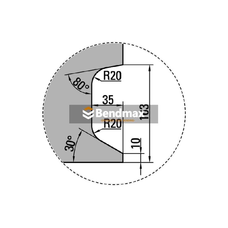 Он Штамп с изогнутой матрицей для сложных фланцев разработан для выполнения задач точной формовки с угол изгиба 78° и тонко обработанный Радиус R1,0 ммОбеспечивая чистое и стабильное качество изгиба. Разработан для bendmax-System LVD Type I, Trumpf, and WilaОн обеспечивает превосходную совместимость с основными платформами листогибочных прессов. Изготовлен из высокопрочного материала. Легированная сталь 42CrMo4Благодаря этому пробойник обеспечивает превосходную прочность и длительный срок службы. высота 159 мм и а Грузоподъемность 400 кН/мОн надежно работает в условиях легкой и средней нагрузки при гибке. Этот пуансон — идеальное решение для производителей, стремящихся к стабильной работе, универсальности и точным результатам в повседневной производственной деятельности.