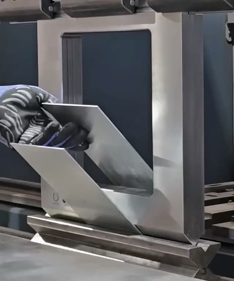 Клиент использовал стандартный инструмент для листогибочного прессаИз-за больших габаритов и высоких боковых стенок заготовки обычные верхний и нижний инструменты не могли обеспечить достаточный зазор, что делало неизбежным возникновение помех.